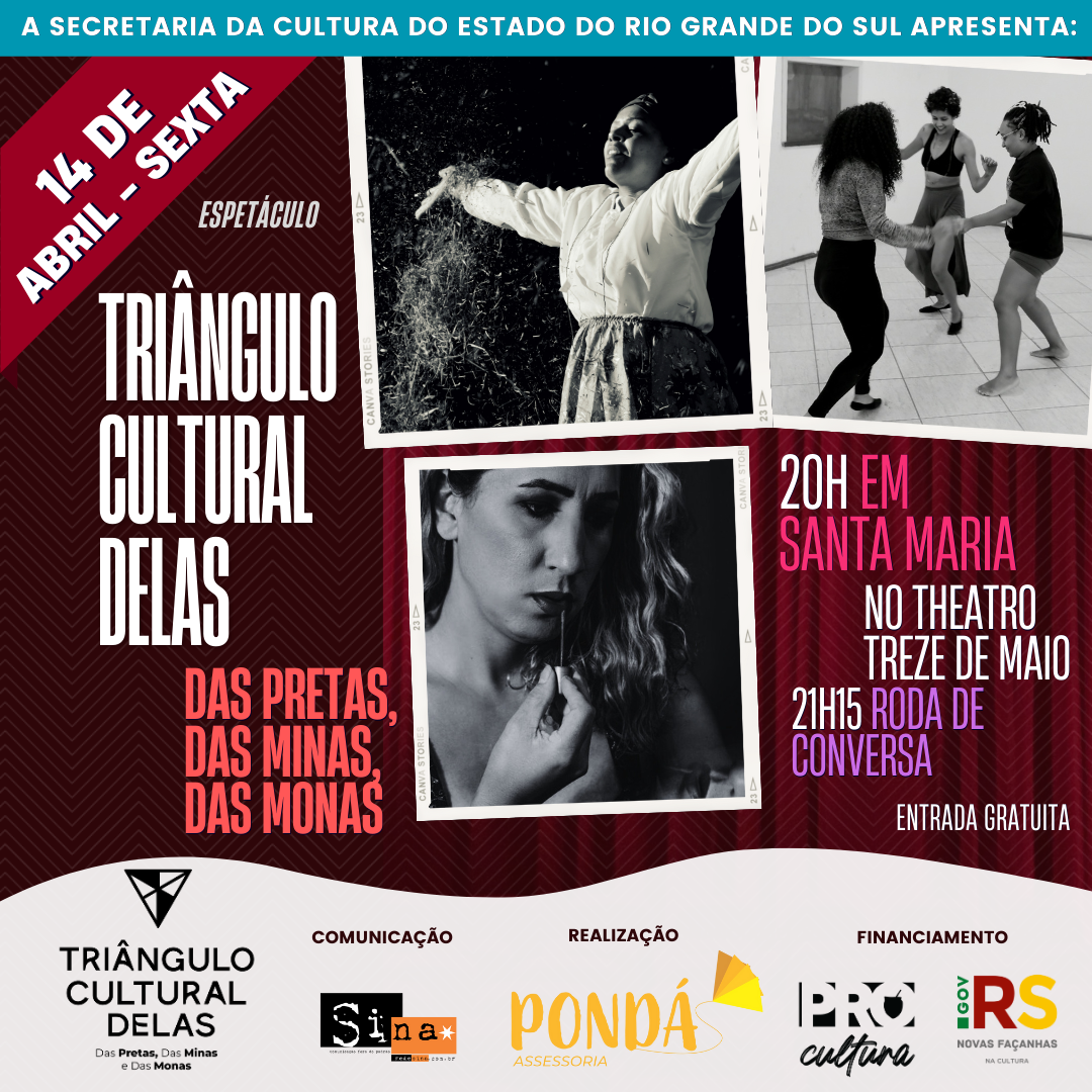 Reunindo artistas de Santa Maria, Santiago e São Sepé o espetáculo “Triângulo Cultural Delas: das pretas, das minas e das monas”, com produção de Isadora Bispo da Pondá Assessoria, busca dar visibilidade a produções comunitárias e traz histórias de lutas das mulheres.