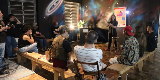 A noite será marcada pelo tradicional mic aberto, onde o público poderá compartilhar textos autorais ou leituras de autores que os inspiram, criando um espaço de acolhimento e troca literária.